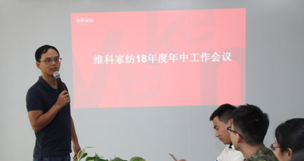 總經理王吉鋒總結了2018年上半年公司整理運營狀況,并布置了下半年五項工作重點,下半年將從完善并實施《維科家紡管理手冊》;探索拓展新思路,完成年初設定的拓展目標;探索并形成直營新店快速盈利模式;老庫存的清理工作;確保會員、婚慶、團購三大項目達到預期效果這五大重點工作來開展,力保在下半年的家紡旺季中取得飛躍式發展。