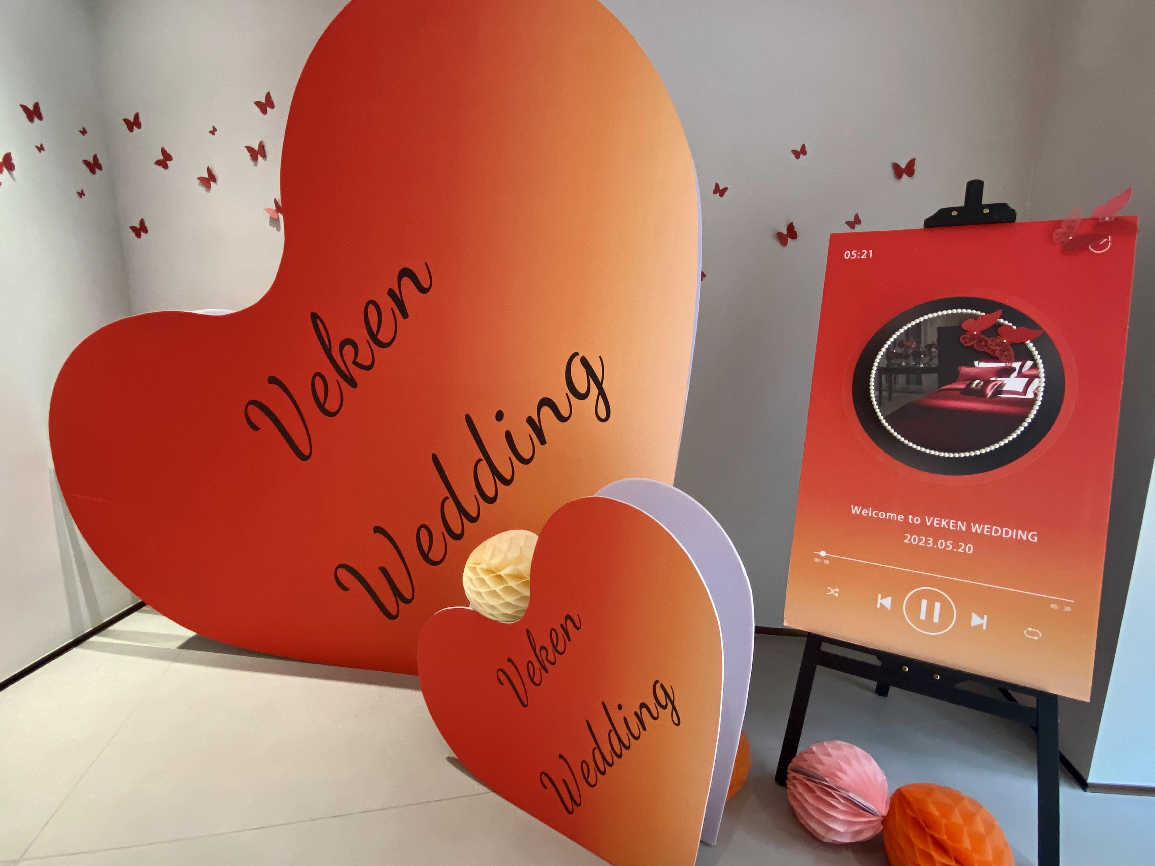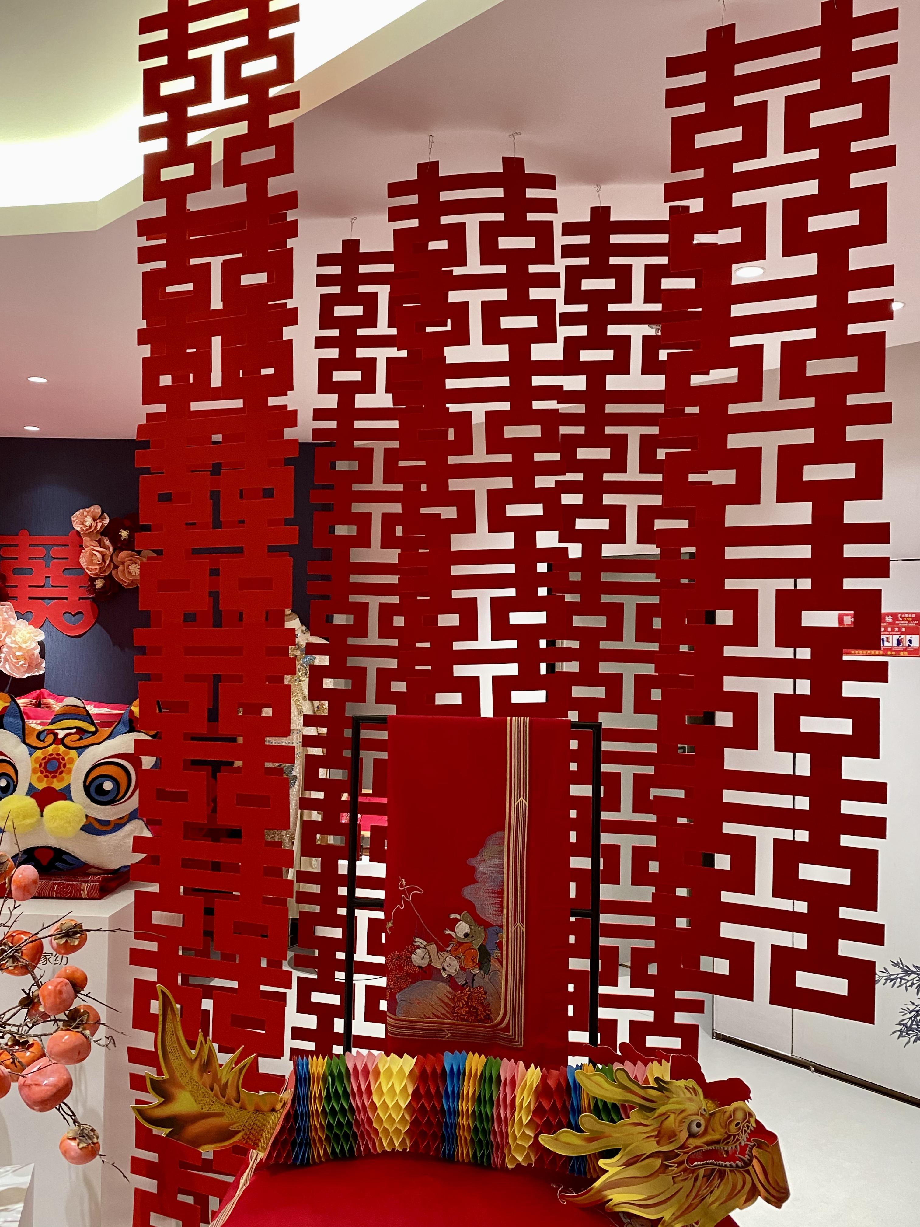 婚慶區通過精美的垂掛之“囍”、婚禮唱片機、維科喜樹等道具營造出浪漫而喜慶的氛圍,創造了一個令人陶醉的夢境。